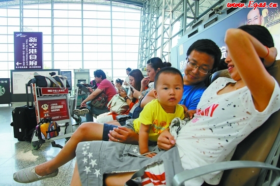 ![]() 圖為即將踏上旅程的一家三口在候機(jī)。 范照明 伍帥 攝影報(bào)道 ![]() |