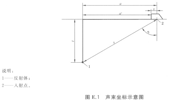 使用脈沖波技術(shù),應(yīng)在示波屏上設(shè)置超聲時(shí)基線。一束透射聲束的聲程距離、深度、水平距離、或者扣除前沿的水平距離的坐標(biāo),見(jiàn)圖E.1。除非另有注明,下述所提及設(shè)定時(shí)基線工藝是指聲束傳播的聲程距離(一個(gè)回波等于兩次的傳播路徑)。