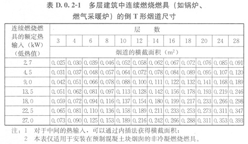 D02共用給排氣煙道(D01-1~圖D01-4)的橫截面積可根據(jù)下列規(guī)定確定: