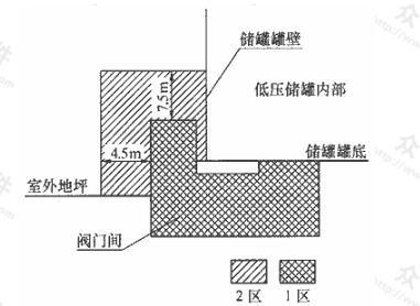 儲(chǔ)罐底部至地坪以上的范圍(半徑c不小于4.5m)為2區(qū)。