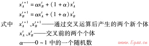 ⑤ 交叉運(yùn)算:交叉運(yùn)算是遺傳算法中產(chǎn)生新個(gè)體的主要操作過程。由于本文采用實(shí)數(shù)編碼,因此選用算術(shù)交叉,其表達(dá)式為: