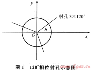 圖1中采用120°相位射孔完井,在得到任意射孔方位角對(duì)應(yīng)的破裂壓力下,3個(gè)射孔處對(duì)應(yīng)的破裂壓力分別為p1,p2,p3;某個(gè)角度對(duì)應(yīng)的破裂壓力應(yīng)該為3個(gè)孔中對(duì)應(yīng)最小的破裂壓力,即min(p1,p2,p3),據(jù)此可以做出任意角度θ對(duì)應(yīng)的破裂壓力,也就得到了該相位射孔井在該地層對(duì)應(yīng)的破裂壓力變化范圍。