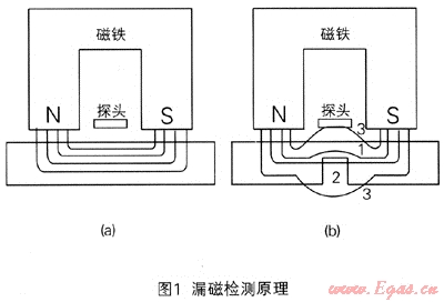 若被測工件表面光滑、沒有缺陷,內(nèi)部沒有雜物,則磁通將全部通過被測工件,如圖1(a)所示;