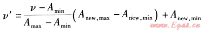 該方法是對(duì)初始數(shù)據(jù)進(jìn)行的一種線性轉(zhuǎn)換。它是將屬性A的一個(gè)值v映射為v′且有v′∈[Anew,min,Anew,max],具體映射計(jì)算式為: