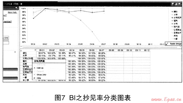 GDIA系統(tǒng)對數(shù)據(jù)挖據(jù)及BI展現(xiàn)作了有意義的嘗試。BI展現(xiàn)技術(shù)可按使用者的不同管理思路和需要,進行多維度的自由分解展現(xiàn),系統(tǒng)實現(xiàn)了抄見率、賬款回收等指標(biāo)的深層挖掘和分解下鉆,為管理者提供了全新的分析角度,起到了抄表銷售管理和賬務(wù)管理的輔助決策工具的作用。該功能的實現(xiàn)也對使用者提出了很高要求,使用者不僅要熟練掌握各類業(yè)務(wù)流程及熟悉系統(tǒng)數(shù)據(jù)結(jié)構(gòu),同時需要具備相當(dāng)廣度與深度的管理分析能力。