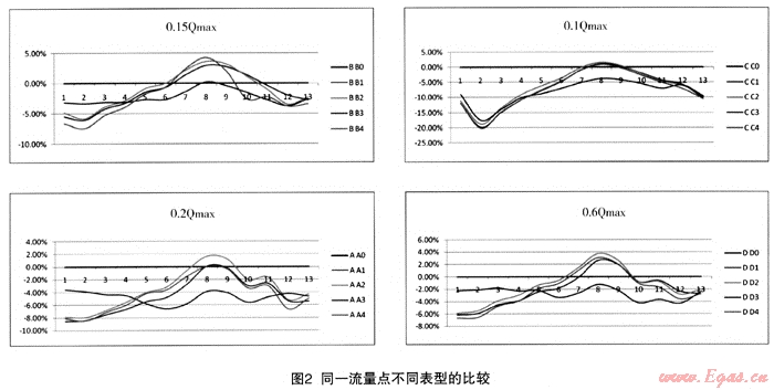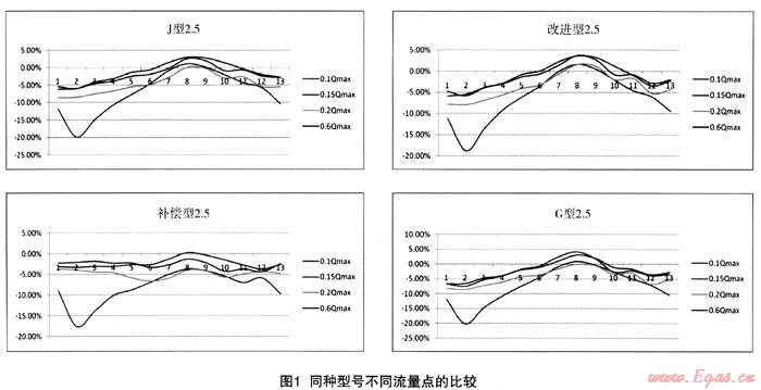 (1) 同種型號(hào)不同流量點(diǎn)的比較,見(jiàn)圖1。