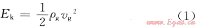 式中:Ek為氣體動(dòng)能,J/m3;ρg為氣體密度,kg/m。;vg為氣體速度,m/s。