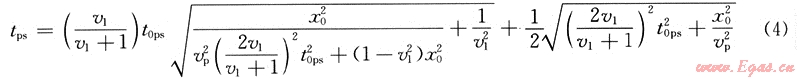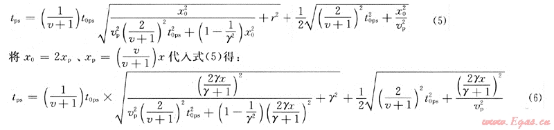 對(duì)于水平反射層,轉(zhuǎn)換波的時(shí)距方程可寫為: