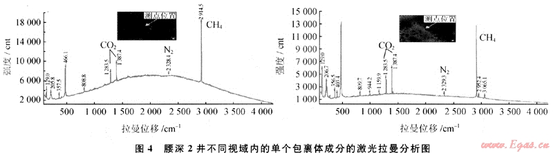 1) 長嶺斷陷火山巖儲層既存在氣態(tài)烴包裹體,又存在液態(tài)烴類包裹體,但以氣態(tài)烴包裹體為主。氣態(tài)包裹體中含CH4外,還存在較多的CO2,其中達爾罕構(gòu)造營城組包裹體中CO2含量較高,這與天然氣藏中CO2相對含量的變化趨勢一致。