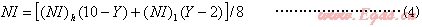 式中:(NI)h——式(3)高充填因數(shù)線圈計(jì)算的NI值;(NI)1——式(1)或式(2)低充填因數(shù)線圈計(jì)算的NI值; Y——線圈的橫截面積與工件橫截面積之比。