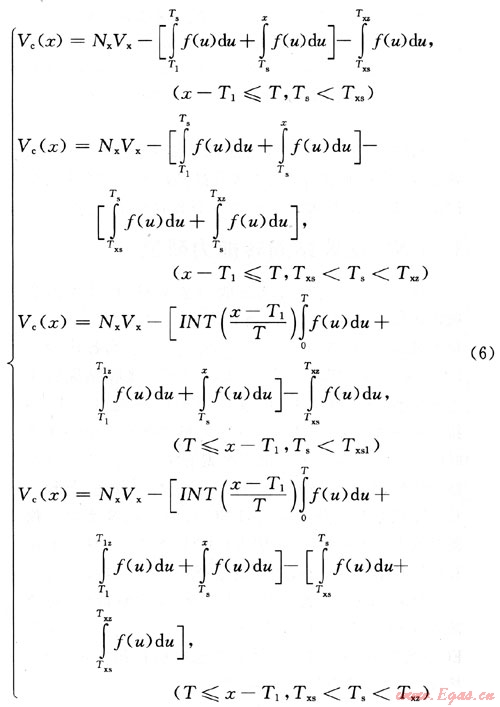 式中V(x)為任意時(shí)刻LNG接收站庫存水平,m3;Nx為LNG運(yùn)輸船量,m3;T1為第一次運(yùn)輸船卸船開始時(shí)刻;Ts為所求時(shí)刻所屬“季節(jié)”期起始時(shí)刻;T1z為第一次運(yùn)輸船卸船開始時(shí)刻所屬季節(jié)期的終止時(shí)刻。