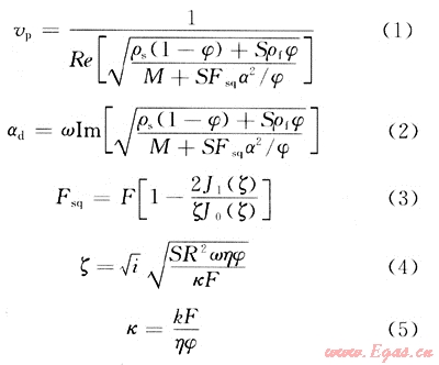 式中:S為飽和度;J0為零階貝塞爾函數(shù);J1為一階貝塞爾函數(shù);ρs為固體密度;φ為孔隙度;ρf為流體密度;M為干噪骨架的單軸應(yīng)變模量;Fsq為固-流耦合系統(tǒng)的綜合壓縮性;α為有效應(yīng)力孔隙彈性系數(shù);R為特征噴射流動(dòng)長度;ω為圓頻率;η為流體黏滯度;k為滲透率;F為固-流耦合系統(tǒng)的壓縮性;κ為干噪骨架體積模量。