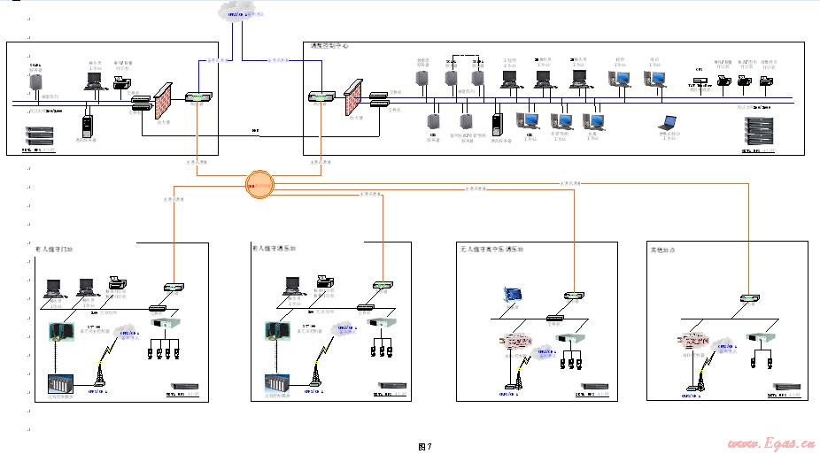 廣域網(wǎng)通信:對于SCADA系統(tǒng)的廣域網(wǎng)通信,從中心調(diào)度層到各站控系統(tǒng)的廣域網(wǎng)連接,通過廣域網(wǎng)路由器和租用專業(yè)通信公司的信道,以光纖或無線GPRS/CDMA方式,實現(xiàn)遠程數(shù)據(jù)的傳遞和交換。通信協(xié)議采用MODBUS、DNP3等通信協(xié)議