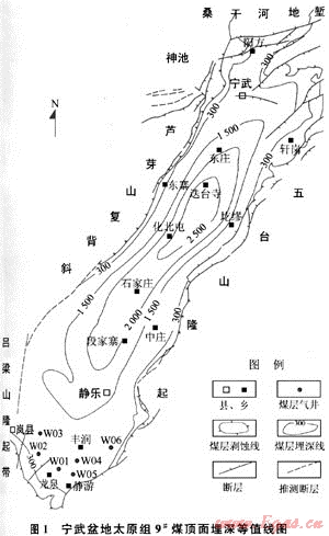 寧武盆地發(fā)育石炭-二疊系、侏羅系2套含煤巖系[3]。其中下二疊統(tǒng)山西組(P1s)底部4#煤和上石炭統(tǒng)太原組(C3t)下部9#煤?jiǎn)螌雍穸却?,全盆地穩(wěn)定分布,是煤層氣勘探的主要目的層。侏羅系含煤性差,分布范圍小,為次要勘探目的層。