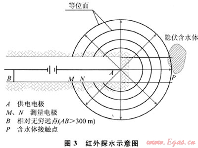 HY-303紅外探水儀,能探測20~30m范圍內(nèi)的地下水狀況?;驹恚寒斁蜻M前方30m范圍內(nèi)存在含水構造或溶洞時,前方災害源產(chǎn)生的紅外異常場,必然會傳播到掘進后方,因而在掘進后方隧道的側壁上能提前發(fā)現(xiàn)災害源產(chǎn)生的紅外異常場。其特點為:①距離短,一般為35m;②只定性告知35m范圍內(nèi)有無水,至于水壓、水量、具體哪個里程則探測不出;③適用于任何地層中定性判斷探測點前方“有沒有水”及水體存在方位;④儀器小巧輕便,操作簡單,可實現(xiàn)全空間全方位探測;⑤資料分析簡潔、快速、直觀;⑥基本不占用隧道施工時間。