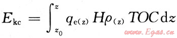 式中:Ekc為排烴強(qiáng)度,104t/km2;Z為埋深,m;Z0為排烴門(mén)限,m;qe(z)為單位質(zhì)量有機(jī)碳的排烴率,mg/g;ρ(z)為烴源巖密度,g/cm3;TOC為有機(jī)碳百分含量,%;H為烴源巖厚度,m。