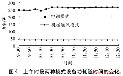 ② 機械通風模式的設(shè)備功耗是空調(diào)模式的15%左右。