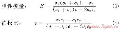 式中:E為彈性模量;v為泊松比;σ1、σ2、σ3為三軸壓力,其中σ1表示垂向壓力,實(shí)驗(yàn)中指軸壓,σ2、σ3表示水平壓力,實(shí)驗(yàn)中指圍壓,在假三軸力學(xué)實(shí)驗(yàn)中,;σ23;ε1為垂向應(yīng)變,實(shí)驗(yàn)指軸向應(yīng)變;ε2橫向應(yīng)變,實(shí)驗(yàn)指平均徑向應(yīng)變。