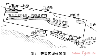 研究區(qū)位于準(zhǔn)噶爾盆地南緣的中、西段,西起奎屯,東至昌吉,東西長(zhǎng)約500km、南北寬40km,勘探面積約20000km2。區(qū)域構(gòu)造位置為準(zhǔn)噶爾盆地南緣山前斷褶帶二、三排構(gòu)造帶(圖1)。其二、三維地震剖面的年度跨度大,涉及1979、1985~1993、1996~1999、2000~2008年等多年度采集、處理的資料。連片解釋選用了其中的二維測(cè)線共147條段,剖面總長(zhǎng)4072.05km,三維資料639km2。分析這些資料可以看出,資料處理的年度、單位及參數(shù)等都不盡相同,特別是基準(zhǔn)面和填充速度的不統(tǒng)一,導(dǎo)致剖面形式(含浮動(dòng)面及多種固定基準(zhǔn)面)相差較大,存在老資料難以統(tǒng)一使用的問(wèn)題。