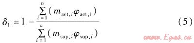 全年因LNG卸車前后損失、LNG氣化率理論值與實測值間差異的綜合作用產(chǎn)生的供銷差率δ1的計算公式為: