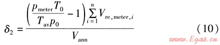 令全年燃?xì)馄骄鶞囟萒av=Tmeter,并將式(8)代入式(9),則δ2的近似計算公式為: