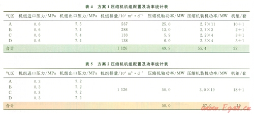綜上所述,由于各氣區(qū)壓力衰減不一樣,增壓的時(shí)間也不一致,若采用天然氣處理廠前集中增壓,則各氣區(qū)進(jìn)天然氣處理廠增壓前必須保持壓力一致,不能充分利用各氣區(qū)的壓能,同時(shí)集氣干線管徑需按照增壓前的低壓進(jìn)行計(jì)算,增大了管徑。因此,從技術(shù)可行和經(jīng)濟(jì)合理方面綜合考慮,應(yīng)采用各氣區(qū)集中增壓方案。