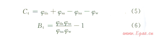 由于φda、φsa、φna和φw都作了巖性和泥質(zhì)校正,因而只反映了孔隙流體性質(zhì)的影響,天然氣對(duì)四者的影響一并用C4或B4表示。顯然,若儲(chǔ)層為水層,C4=0,B4=0;若儲(chǔ)層為氣層,C4>0,B4>0。
