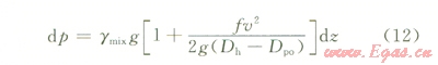 由環(huán)空氣體流動方程組可知,對于等直徑的環(huán)空微元段,假設(shè)其中氣體流速不變,則由動量守恒方程可得
