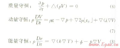式中g為重力加速度;μ=μ(p、T)為黏性系數(shù);λ=λ(p、T)為體膨脹黏性系數(shù);k=k(p、T)為熱傳導(dǎo)系數(shù)。