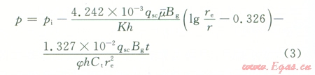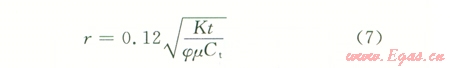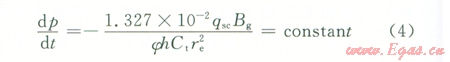 根據(jù)滲流力學理論,對于封閉氣藏中定產(chǎn)生產(chǎn)井,當處于擬穩(wěn)定流動時,在任意一點處有: