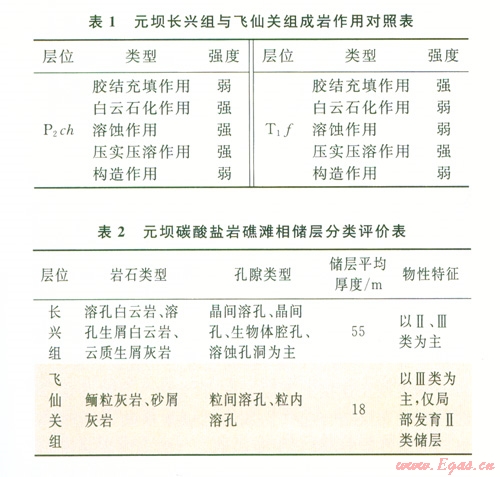 1)元壩地區(qū)嘉陵江組上部一雷口坡組膏鹽巖蓋層分布穩(wěn)定,長興組與飛仙關組氣藏氣源主要為吳家坪組(P2w)、龍?zhí)督M(P2w)烴源巖,儲層特征的差異導致了長興組主要為中高產天然氣藏,飛仙關組主要為低產氣藏。