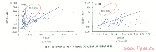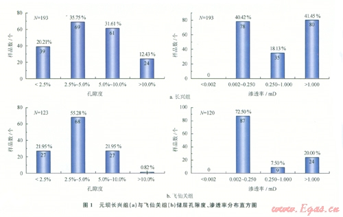 總體上,長興組儲層以中孔中高滲、低孔中低滲儲層為主,高孔高滲儲層次之,儲層物性較好,有利于油氣的高產富集。