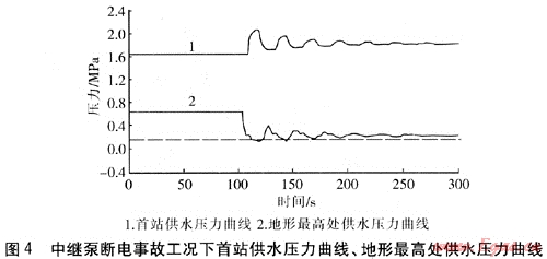 CJJ 34—2002《城市熱力網(wǎng)設(shè)計(jì)規(guī)范》第7.2.9、7.2.10條規(guī)定:“動(dòng)態(tài)水力分析應(yīng)對(duì)循環(huán)泵或中繼泵跳閘、輸送干線主閥門非正常關(guān)閉、熱源換熱器停止加熱等非正常操作發(fā)生時(shí)的壓力瞬變進(jìn)行分析。動(dòng)態(tài)水力分析后,應(yīng)根據(jù)分析結(jié)果采取下列相應(yīng)的主要安全保護(hù)措施:設(shè)置氮?dú)舛▔汗蓿辉O(shè)置靜壓分區(qū)閥;設(shè)置緊急泄水閥;延長(zhǎng)主閥關(guān)閉時(shí)間;循環(huán)泵、中繼泵與輸送干線的分段閥連鎖控制;提高管道和設(shè)備的承壓等級(jí);適當(dāng)提高定壓或靜壓水平;增加事故補(bǔ)水能力。”