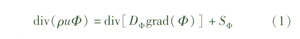 與火焰燃燒一樣,天然氣的無焰氧化包含湍流流動,本文采用標準的可壓縮k-ε模型。穩(wěn)態(tài)形式的動量、能量和物種輸運方程可寫成以下通用形式: