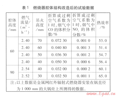 由試驗(yàn)得出,所測試的燃燒器安裝在鍋直徑為1