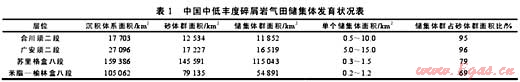 儲集體的大型化發(fā)育是指由平緩地勢與繼承性水系控制的沉積砂體,經(jīng)過成巖作用改造后形成的“儲集體群”,或碳酸鹽巖經(jīng)過后生溶蝕改造作用而形成的“縫洞單元”群,多以集群方式出現(xiàn),規(guī)模相當(dāng)大。本文所說的儲集體大型化發(fā)育,是指儲集體群的規(guī)模在數(shù)千至數(shù)萬平方千米以上(見表1、表2),如鄂爾多斯盆地蘇里格氣田已探明與基本探明的含氣面積超過3.3×104km2,相對獨(dú)立的氣藏?cái)?shù)量多達(dá)數(shù)萬個(gè)。碳酸鹽巖縫洞型“儲集體群”在塔里木、四川和鄂爾多斯盆地都有發(fā)育,是碳酸鹽巖廣泛發(fā)育的一種儲集體類型。如果以縫洞單元作為油氣成藏的基本單元,也是由數(shù)千至數(shù)萬個(gè)油氣成藏單元組成的大型油氣藏群,分布面積在數(shù)千至數(shù)萬平方千米以上。