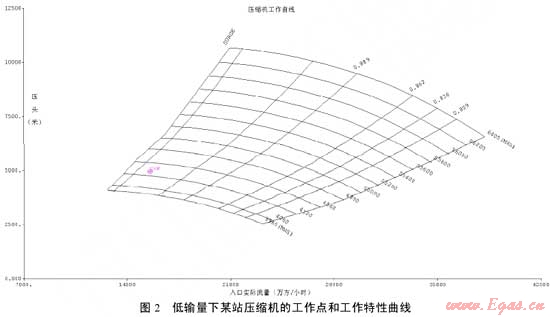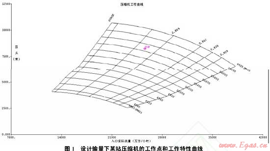 壓縮機組供貨商在投標文件中提供的性能曲線一般只包含有限個水力工況點的參數(shù)。對于多壓縮機站長輸管道,由于下游用氣市場的數(shù)據(jù)不斷更新,用戶在壓縮機組招標期間提供給壓縮機供貨商的水力參數(shù)很可能與實際輸量有很大差別,某些工作點甚至有可能進入喘振線、最大和最小轉速曲線。如果不對壓縮機組進行適用性分析,管道設計者就無法確認不同壓縮機組供貨商提供的壓縮機組能否完全覆蓋管道全部的工況點,無法判定實際工作點在壓縮機性能曲線中的位置,無法確定實際的壓縮機組效率、功率和燃氣耗量等重要參數(shù),無法確定何時需要更換壓縮機轉子,更無從優(yōu)化壓縮機站的運行參數(shù)以獲得最小的能量消耗和最優(yōu)的運行方案。
