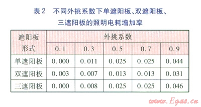 單遮陽(yáng)板、多遮陽(yáng)板基本不影響照明電耗。
