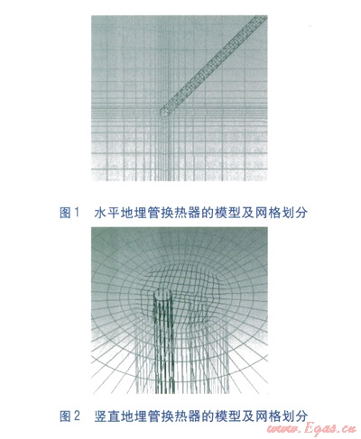 采用ANSYS ICEM CFD進行建模,模型建立時,不對模型進行簡化,完全根據(jù)實際情況進行建模。采用ANSYS CFX進行求解,選擇非穩(wěn)態(tài)計算,管內(nèi)傳熱介質(zhì)流動選擇K-Epsilon模型,動量方程與能量方程耦合求解。水平地埋管換熱器布置成直管形式,地埋管長度為l00m。由于豎直地埋管換熱器的研究基于線熱源,因此將豎直地埋管換熱器的鉆孔深度設(shè)定為l