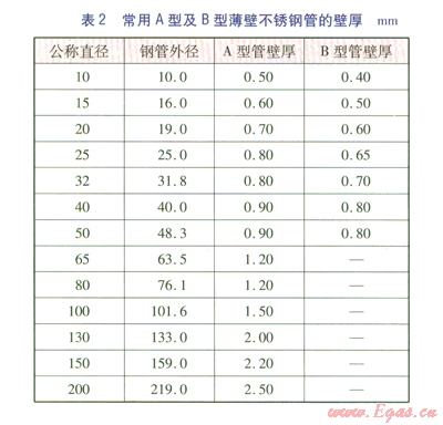 CJJ 94-2009《城鎮(zhèn)燃?xì)馐覂?nèi)工程施工與質(zhì)量驗(yàn)收規(guī)范》對(duì)薄壁不銹鋼管及其管件的使用有如下規(guī)定:①當(dāng)采用薄壁不銹鋼管時(shí),其厚度不應(yīng)小于