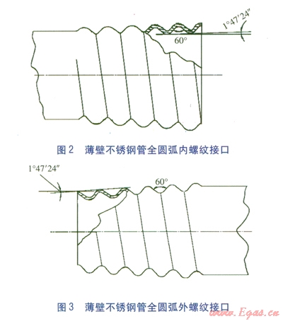 GB 50028-2006認(rèn)可了薄壁不銹鋼管的卡套式連接,CJJ 94-2009認(rèn)可了卡套式、卡壓式、環(huán)壓式3種機(jī)械連接。目前在燃?xì)庑袠I(yè)中,卡壓式連接使用比較廣泛。GB/T l9228.1-2011《不銹鋼卡壓式管件組件》明確了卡壓式連接所應(yīng)達(dá)到的技術(shù)性能,GB/T 3765-2008《卡套式管接頭技術(shù)條件》則明確了卡套式連接所需達(dá)到的技術(shù)條件。因此,我們認(rèn)為,如果全圓弧螺紋接口的連接性能能夠達(dá)到卡壓式或卡套式連接的性能要求,則應(yīng)該能夠在城鎮(zhèn)燃?xì)馐覂?nèi)管道中應(yīng)用。
