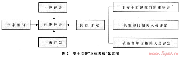 1) 安全監(jiān)督考核的實施應遵循如下步驟:建立一個科學的考核機構,多方收集信息;進行“立體考核”,上級評定安全監(jiān)督“立體考核”體系(見圖2)。