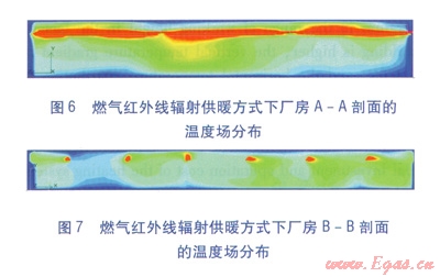 采用CFD模擬軟件對3種供暖方式下廠房內溫度場進行模擬,由模擬結果可知,在采用燃氣紅外線輻射供暖方式時,工作高度范圍內大部分區(qū)域的空氣溫度為12℃左右,垂直高度溫度梯度小,水平方向溫度分布均勻,供暖效果優(yōu)于散熱器供暖方式、暖風機供暖方式。