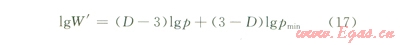 利用泡壓法分別測試潤濕條件和非潤濕條件下不同壓差時的流量數(shù)據(jù),根據(jù)上述公式計算不同直徑連通喉道對滲流能力的比率W',將lg W'與lgr或者lgp作圖,結(jié)合公式(16)和公式(17),通過線性回歸得出斜率,即可得出分形維數(shù)(D)。