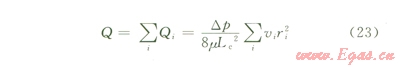 根據(jù)Hagen-poiseuille定律,在壓差Δp作用下,黏度為μ的流體流過毛細管束總流量應(yīng)為: