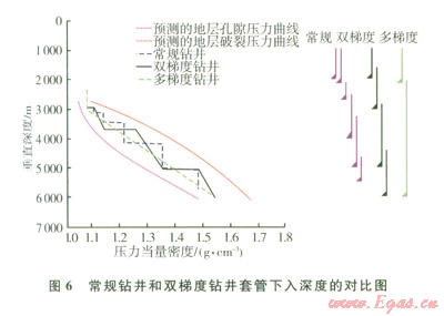 與常規(guī)鉆井和雙梯度鉆井方法相比,采用多梯度鉆井能更好地匹配地層孔隙壓力和破裂壓力窗口,有效控制井筒環(huán)空壓力在地層壓力窗口中變化,使井底壓力在較長的井段內(nèi)介于地層壓力和破裂壓力之間,實(shí)現(xiàn)“移動的海底”概念,能夠簡化深水井復(fù)雜井身結(jié)構(gòu),有效地減少深水鉆井存在的問題,實(shí)現(xiàn)安全鉆進(jìn)。