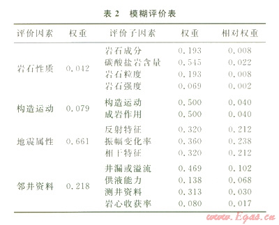 其中,巖石性質包括巖石組分、巖石結構、巖石強度,是最基礎的參數(shù)。地質構造因素分為構造運動及后期的成巖作用;地震屬性選取對井漏漏失通道檢測較敏感的反射特征、振幅變化率、相干特性;鄰井資料包括已發(fā)生漏失井的井漏狀況、供液能力及測井資料(漏失井測井資料上反應的參數(shù)),屬于評判系統(tǒng)的低層次指標。