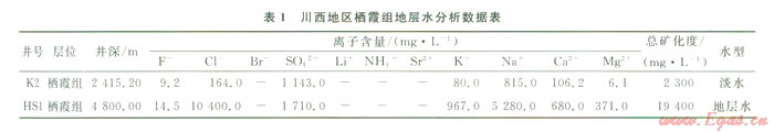 按導(dǎo)電機(jī)理的不同,巖石可分成兩大類,離子導(dǎo)電的巖石和電子導(dǎo)電的巖石,前者主要靠連通孔隙中所含的溶液的正負(fù)離子導(dǎo)電;后者靠組成巖石顆粒本身的自由電子導(dǎo)電。高阻水層的形成主要受宏觀地質(zhì)背景、微觀孔隙結(jié)構(gòu)、孔隙充填物以及流體性質(zhì)等因素的影響。從電性特征看,川西南部的漢深l井與川西北部的礦2井電阻率都較高,根據(jù)該區(qū)岡版解釋儲(chǔ)層流體具有典型的氣層特征,但測(cè)試結(jié)果卻與測(cè)井解釋存在著較大差異,兩口井均產(chǎn)水。從其水化學(xué)分析結(jié)果看,兩者水的性質(zhì)也存在較大差異,從K2井水分析資料來看:Cl-含量?jī)Hl 64 mgL,反映地層水為低礦化度的NaHC03型淡水,而HS1井則為高礦化度的CaCl2型地層水(1)。雖然兩者都產(chǎn)水,但是由于其水的性質(zhì)不同,因而兩者代表著不同的成藏過程和地質(zhì)意義。下面分別分析高阻水層的成因。
