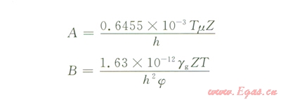 P0為原始地層壓力,MPa;p為目前地層壓力,MPa;K0為原始滲透率,mDK為目前滲透率,mD;a為滲透率模量,Mpa-1;r為平面徑向距離,m;m為黏度,mPa·su為氣體在地層中的滲流速度,m/s;b為湍流系數(shù),m-1;r為地層氣體密度,kg/m3;Qsc為地面標(biāo)準(zhǔn)狀態(tài)下的產(chǎn)量,m3/d;psc為標(biāo)準(zhǔn)大氣壓,Mpa;Z為氣體偏差,無(wú)因次;T為地層溫度,Kh為儲(chǔ)層百度,m;Tsc為標(biāo)準(zhǔn)狀態(tài)下溫度,K;gg為地層氣體的相對(duì)密度,無(wú)因次;R為通用氣體常數(shù),Mpa·m3/(kmol·K)j為孔隙度,無(wú)因次。