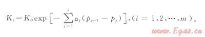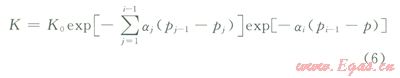 KK0exp[-a(p0-p)]                 (1)